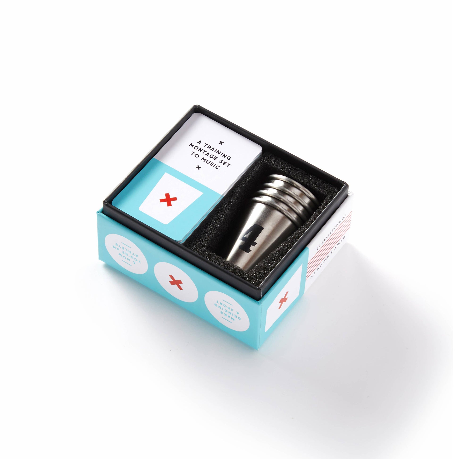 • Comes with four numbered stainless steel shot glasses.