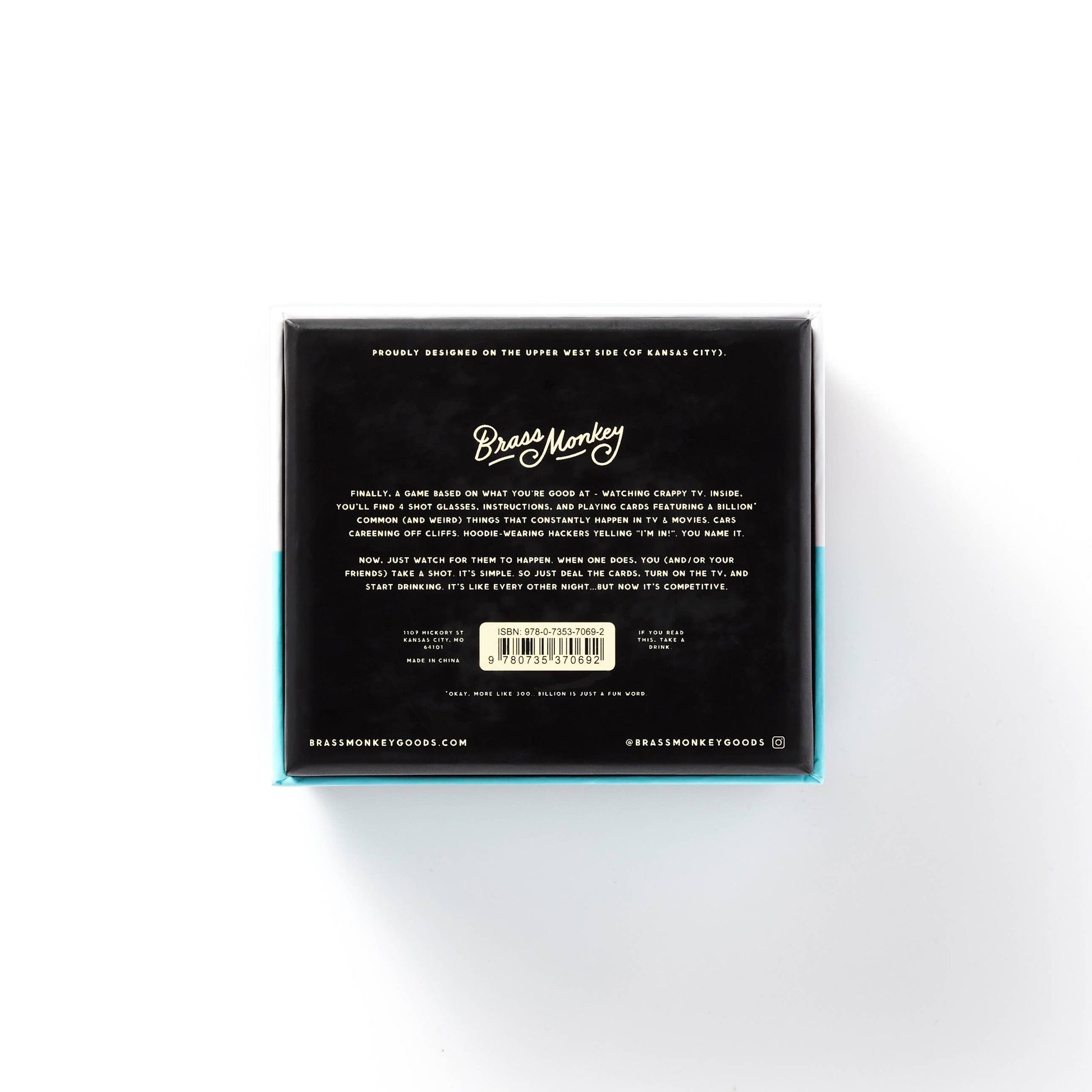 Finally, a game based on what you're already good at – watching crappy TV. This drinking game by Brass Monkey includes four shot glasses, an instruction sheet, and 100 cards that describe the common (& weird) things that always happen in TV & movies. So just deal the cards, turn on the TV, and drink. It's kind of like every other night...but now it's competitive.