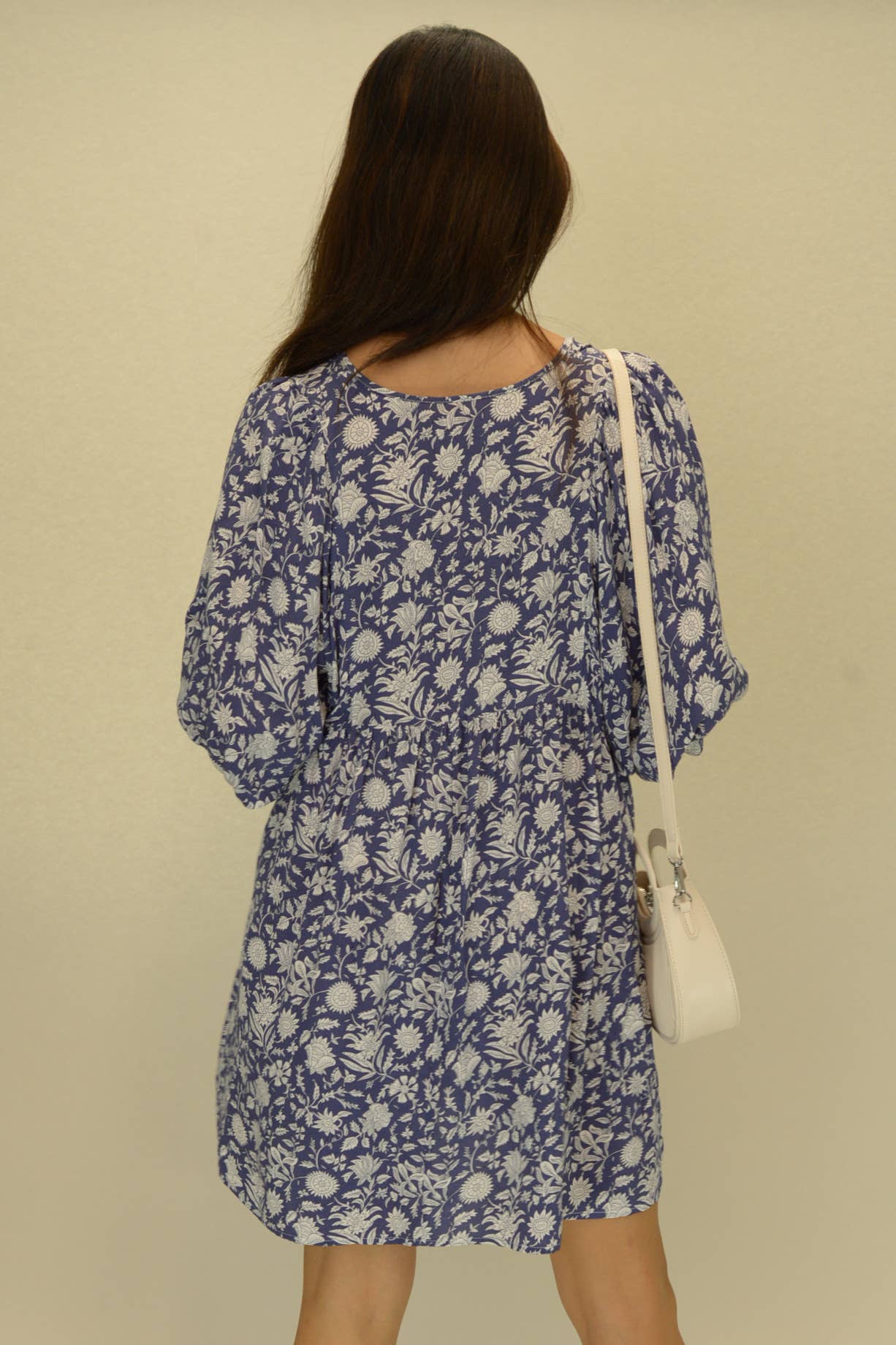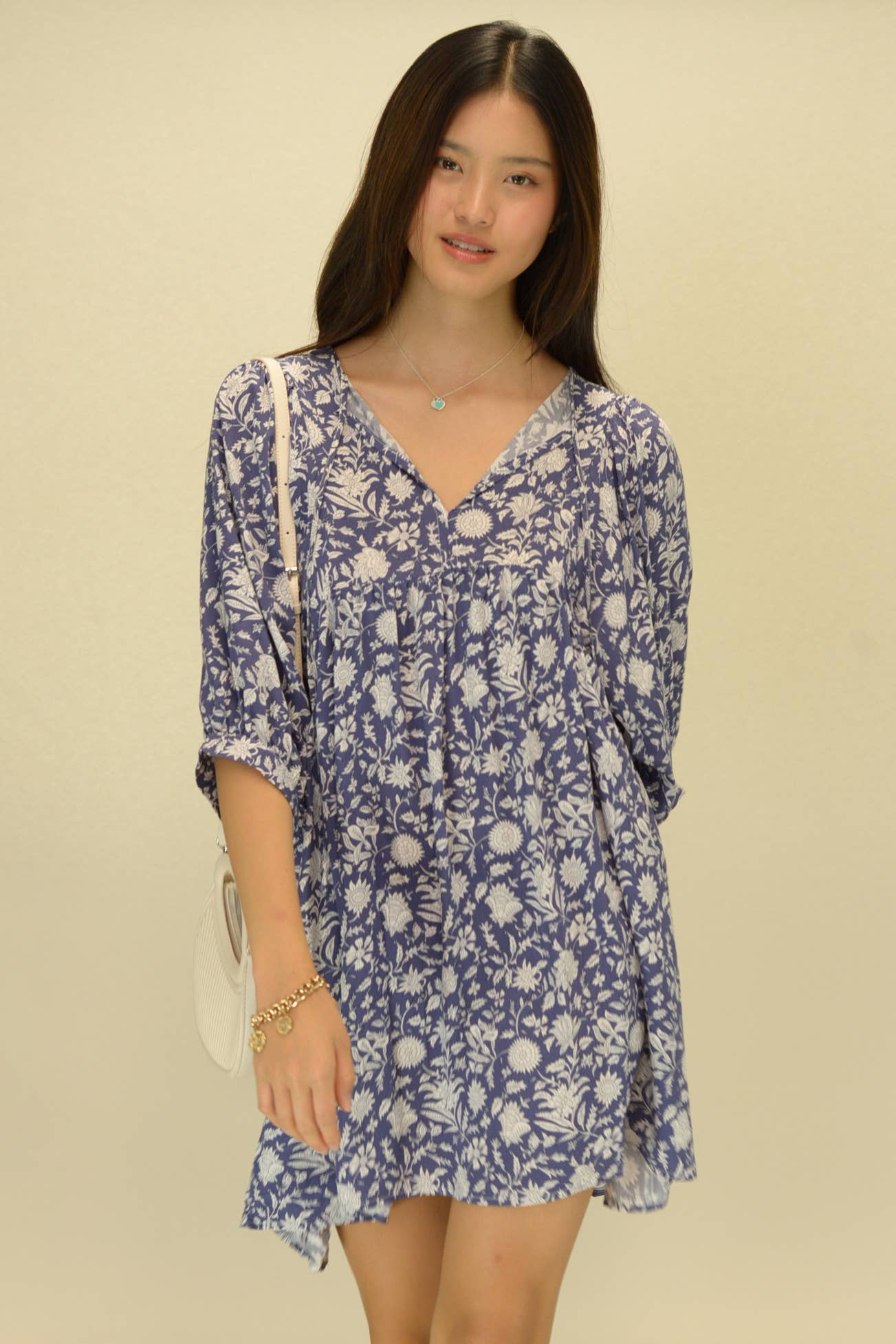 Loose Fitting Floral Print Woven Dress! * Mini length * Woven fabric * V-neckline * Ruched detail * Floral print * Relaxed silhouette * 100%rayon. The model is wearing a size US Small, height is 5'9"