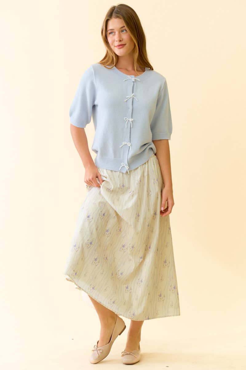 PEARL BOW BUTTON SHORT SLEEVE CARDIGAN
