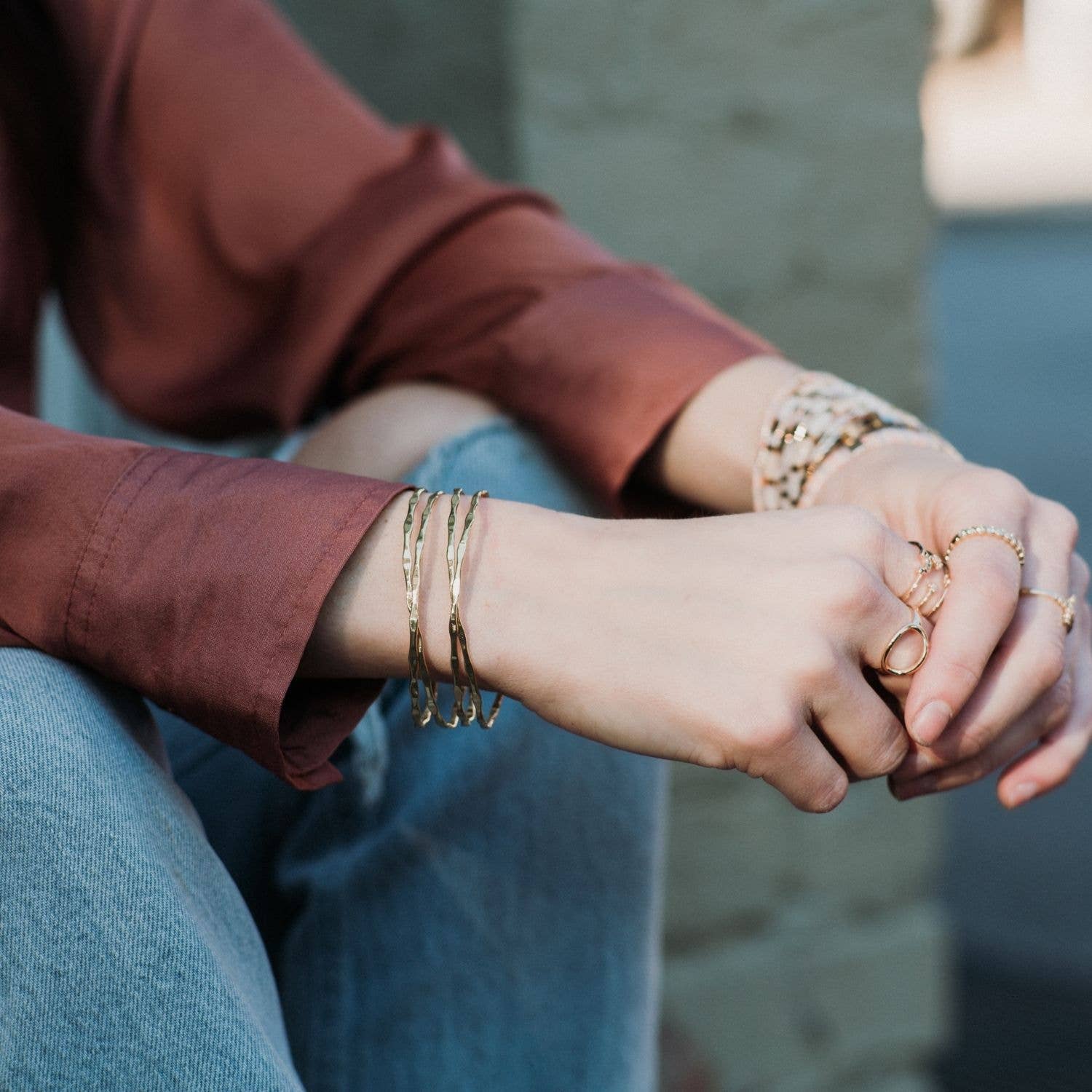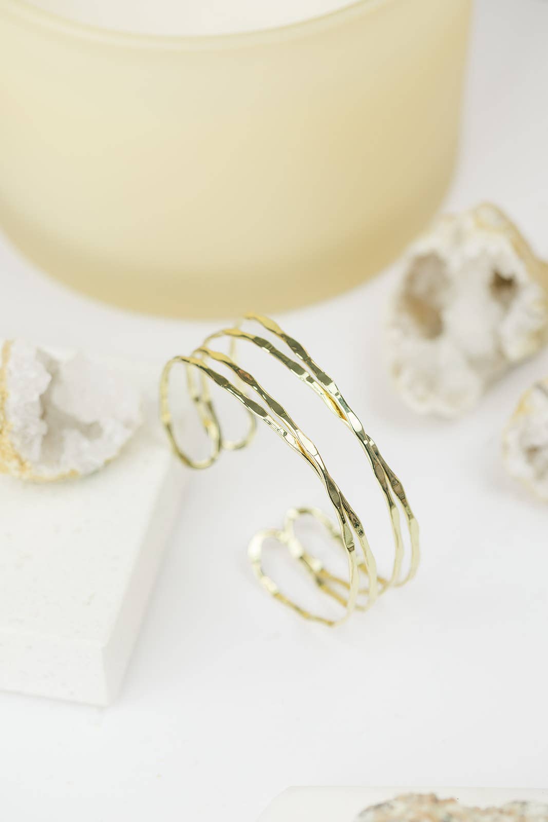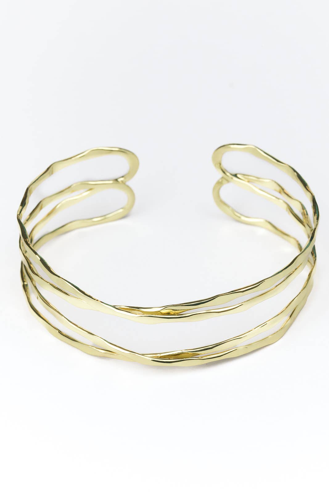Intertwined Cuff: A stunning 4 row bracelet with a beautiful texture. -Brass - Gold or Silver Plated -Adjustable