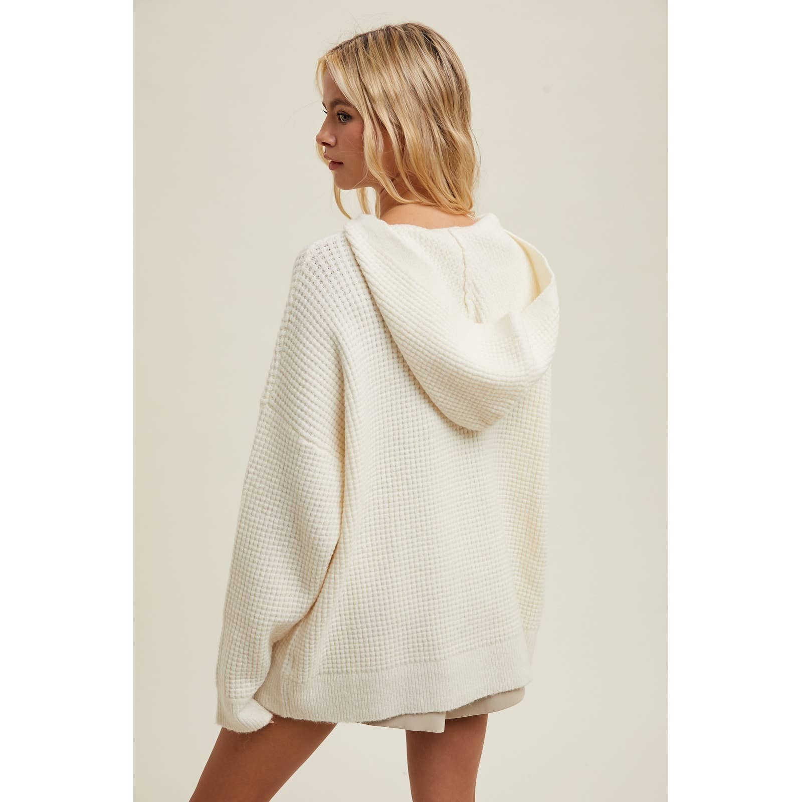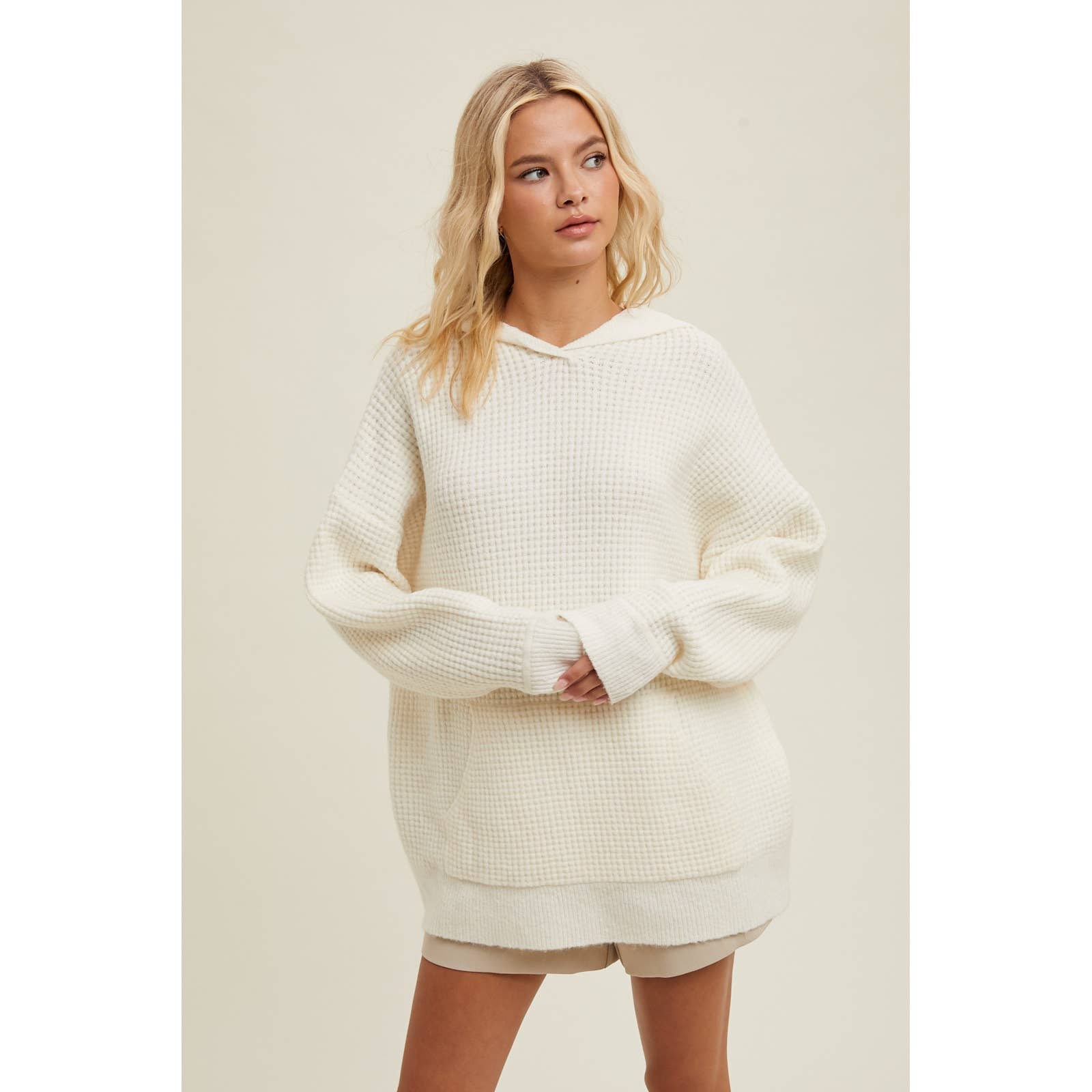WAFFLE SWEATER HOODIE - KANGAROO POCKET 58% POLYESTER, 18% ACRYLIC, 15% NYLON, 6% WOOL, 3% SPANDEX. Soft-White